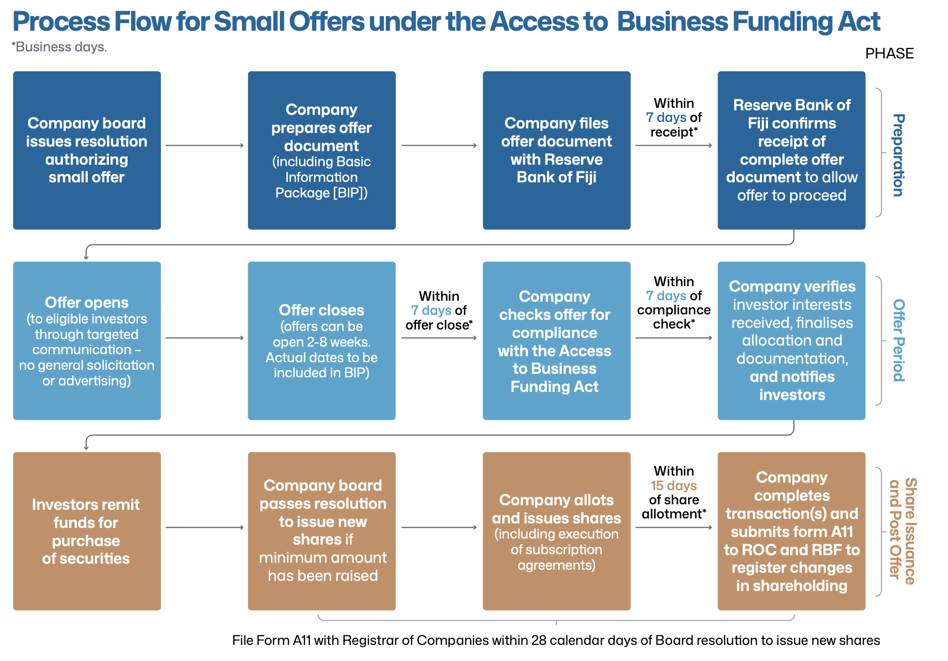 Small Offer Process: The following process flow has been created to assist businesses to understand what is required in order to undertake a small offer under the Access to Business Funding Act.