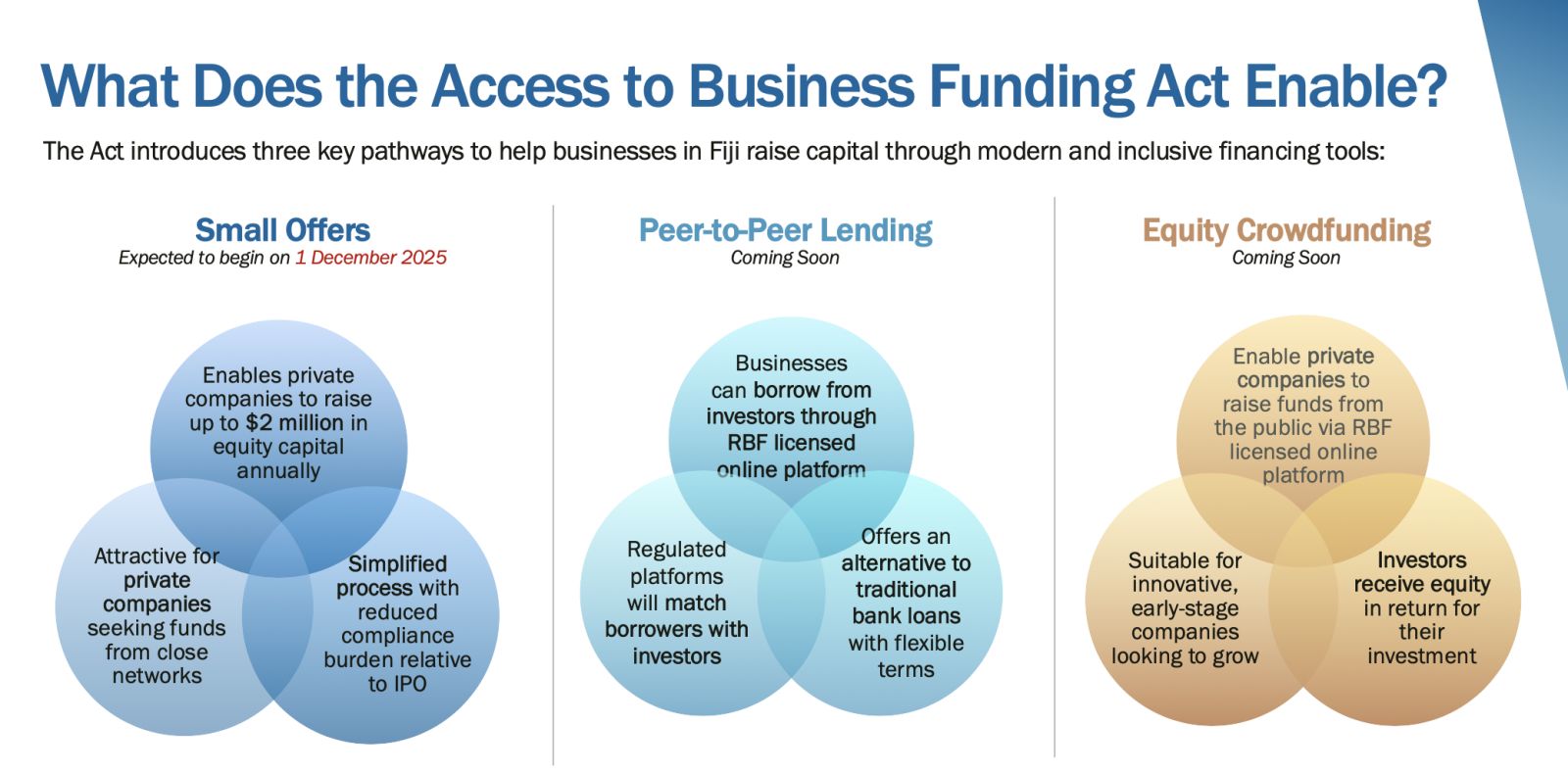 The Act was passed in Parliament in March 2025 to introduce innovative financing mechanisms to allow businesses to raise funds. The Act introduces three innovative fundraising options for registered businesses: